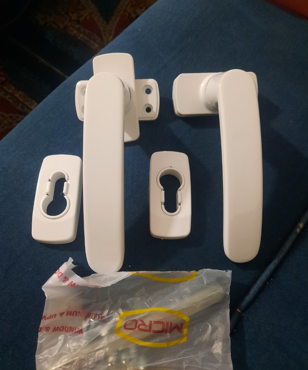 دستگیره دوطرفه آلمونیم مناسب برای درب آلمونیم ترمال بریک و نرمال برند micro دارای گارانتی مادامالعمر رنگ سفید و مشکی